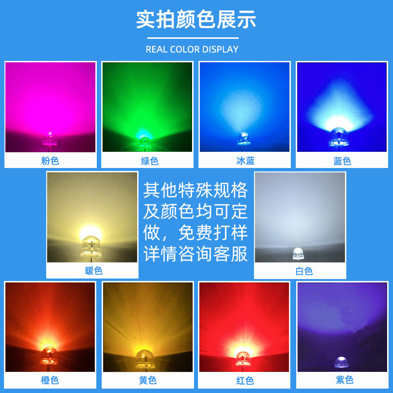 F5发光二级管 白灯翠绿紫色粉红橙黄蓝 5MM草帽LED灯珠 白发红色