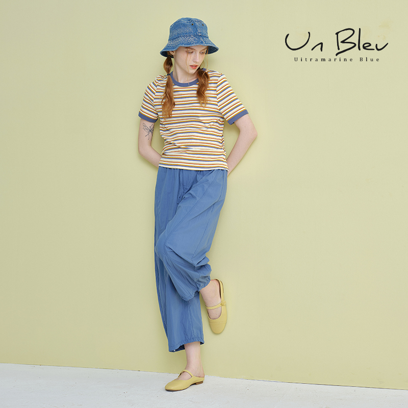 夏日女装 时尚 多巴胺独特漂亮上衣 t恤女2025新款 UnBleu条纹短袖