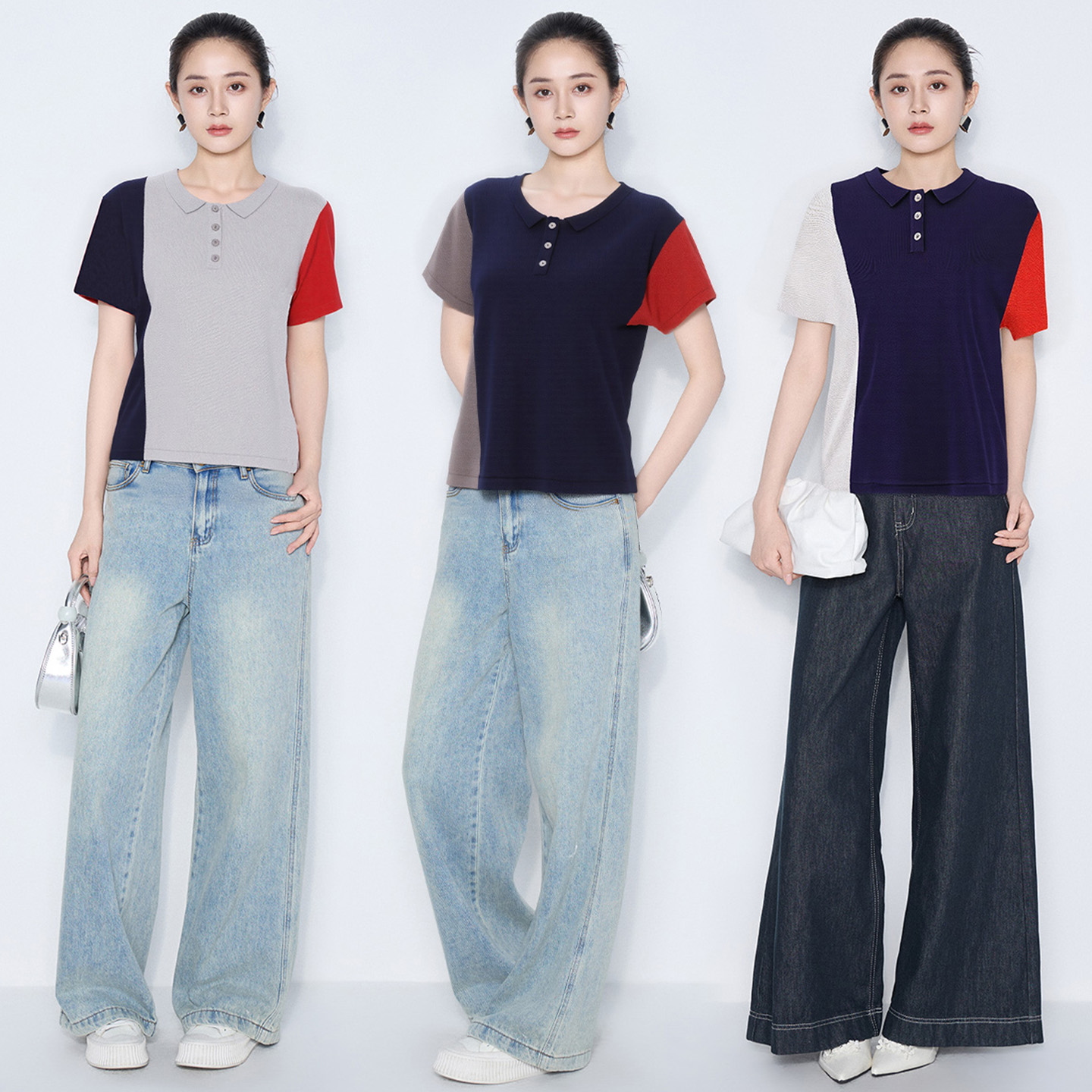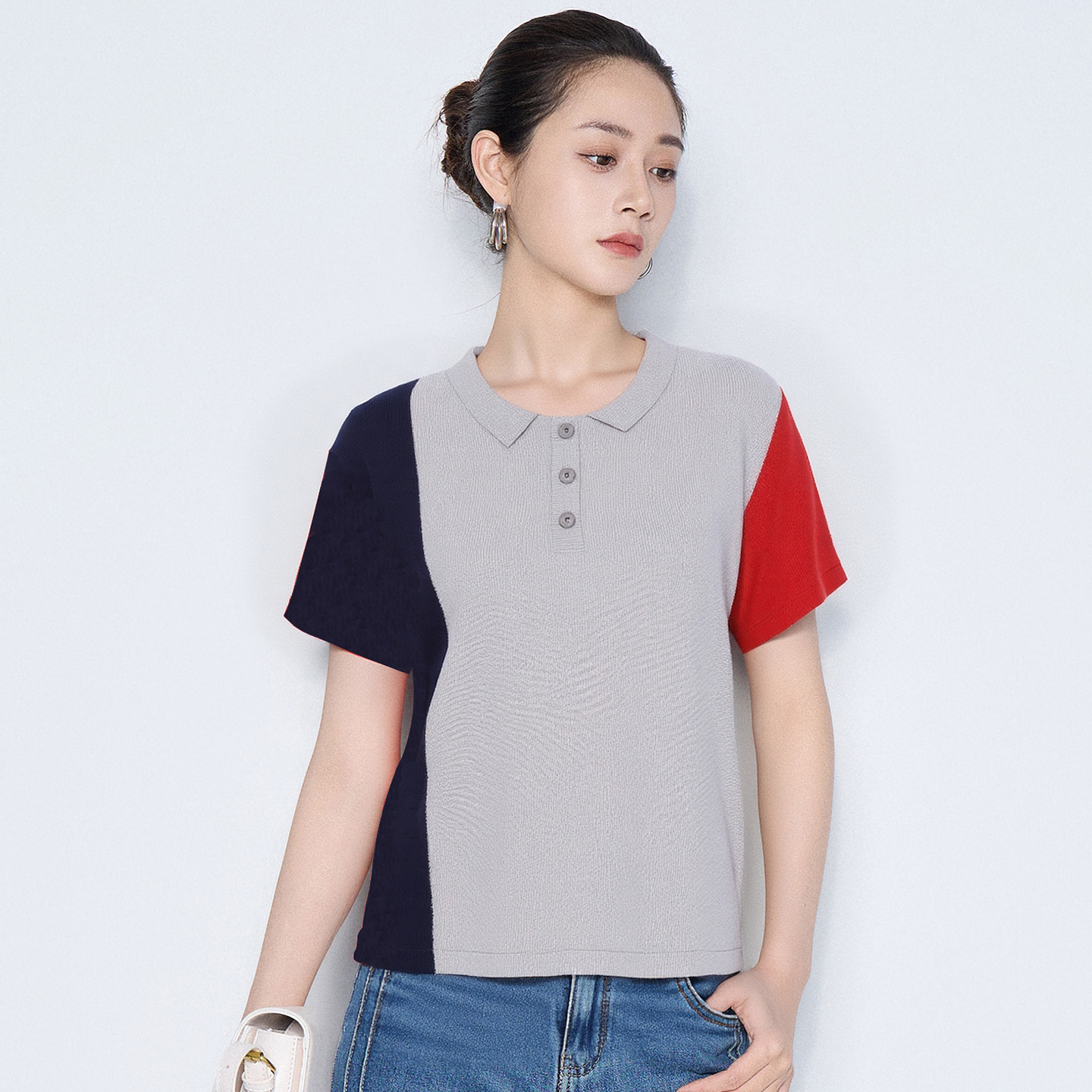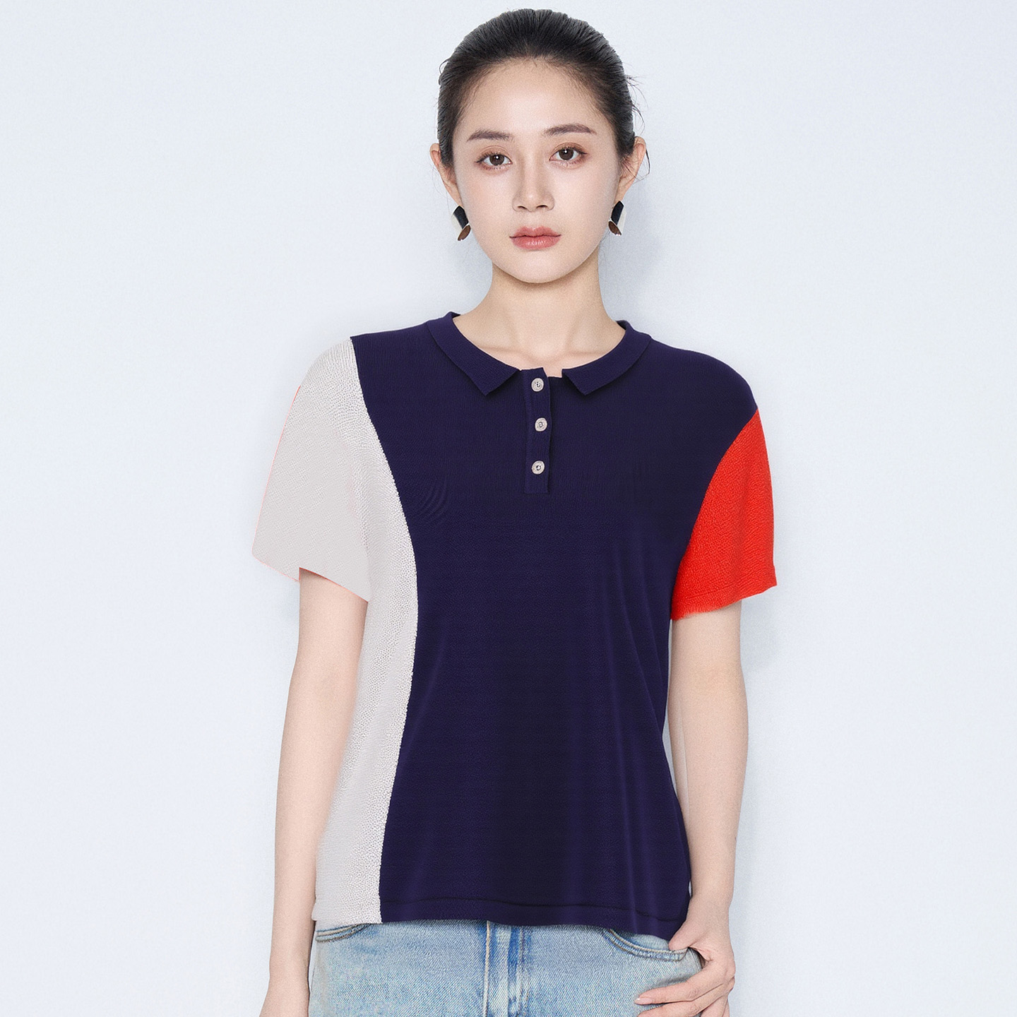 新款 上衣休闲时尚 撞色翻领短袖 小衫 女 针织POLO衫 马天奴2025夏季