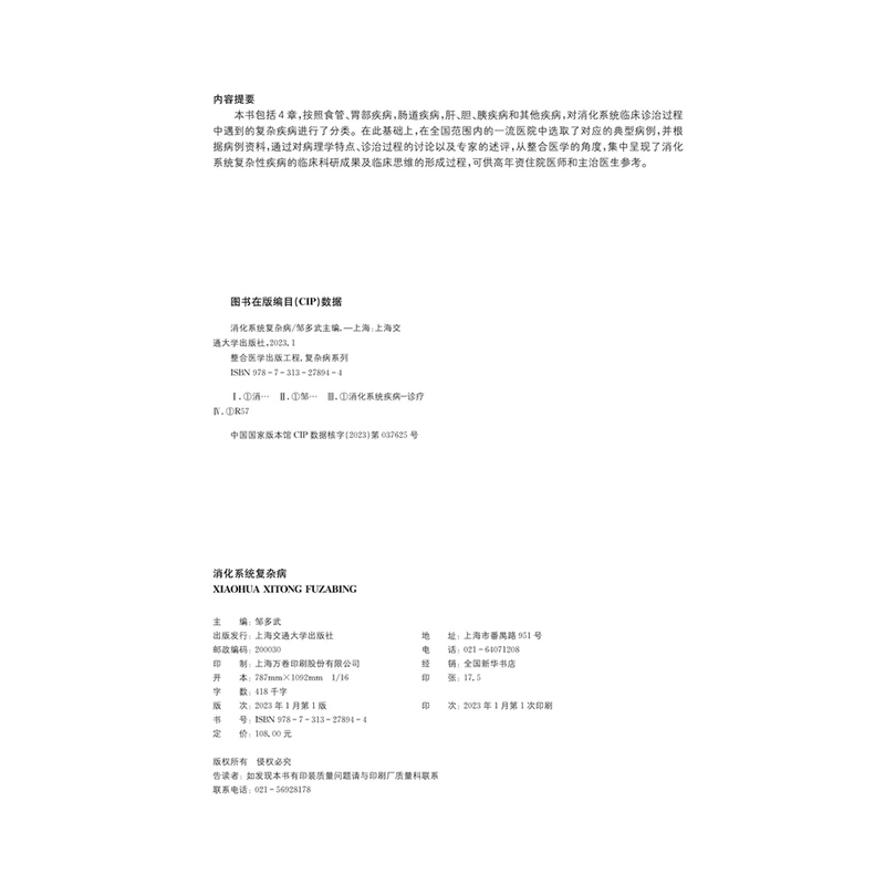 社有限公司新华书店正版 消化系统复杂病 规划项目邹多武内科学上海交通大学出版 物出版 国家重点出版