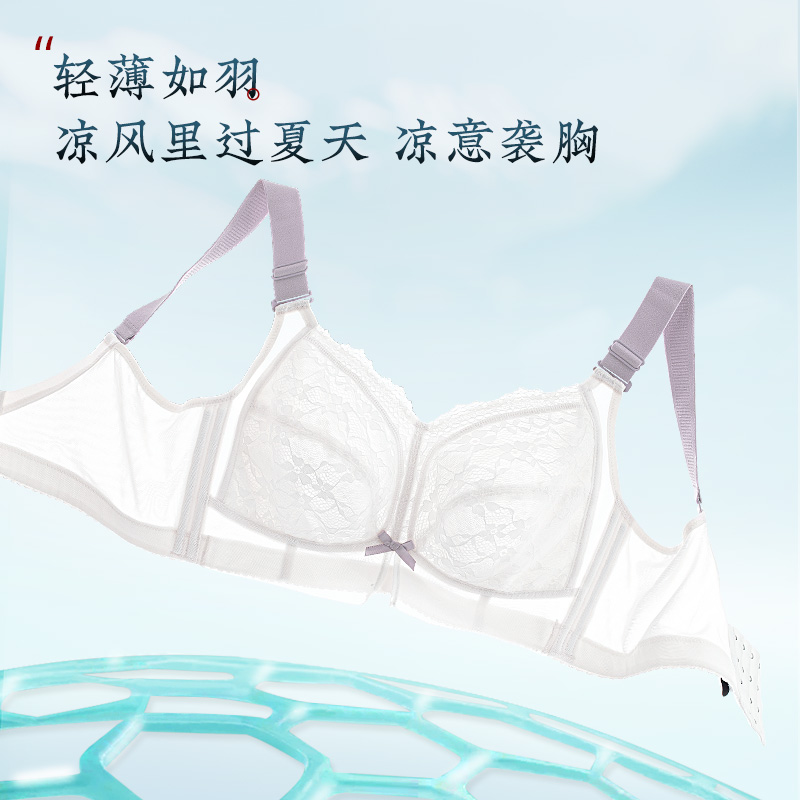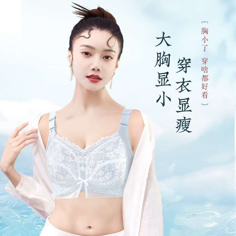 月色大胸显小胸内衣女薄款 文胸夏 聚拢全罩杯胸罩收副乳防下垂大码