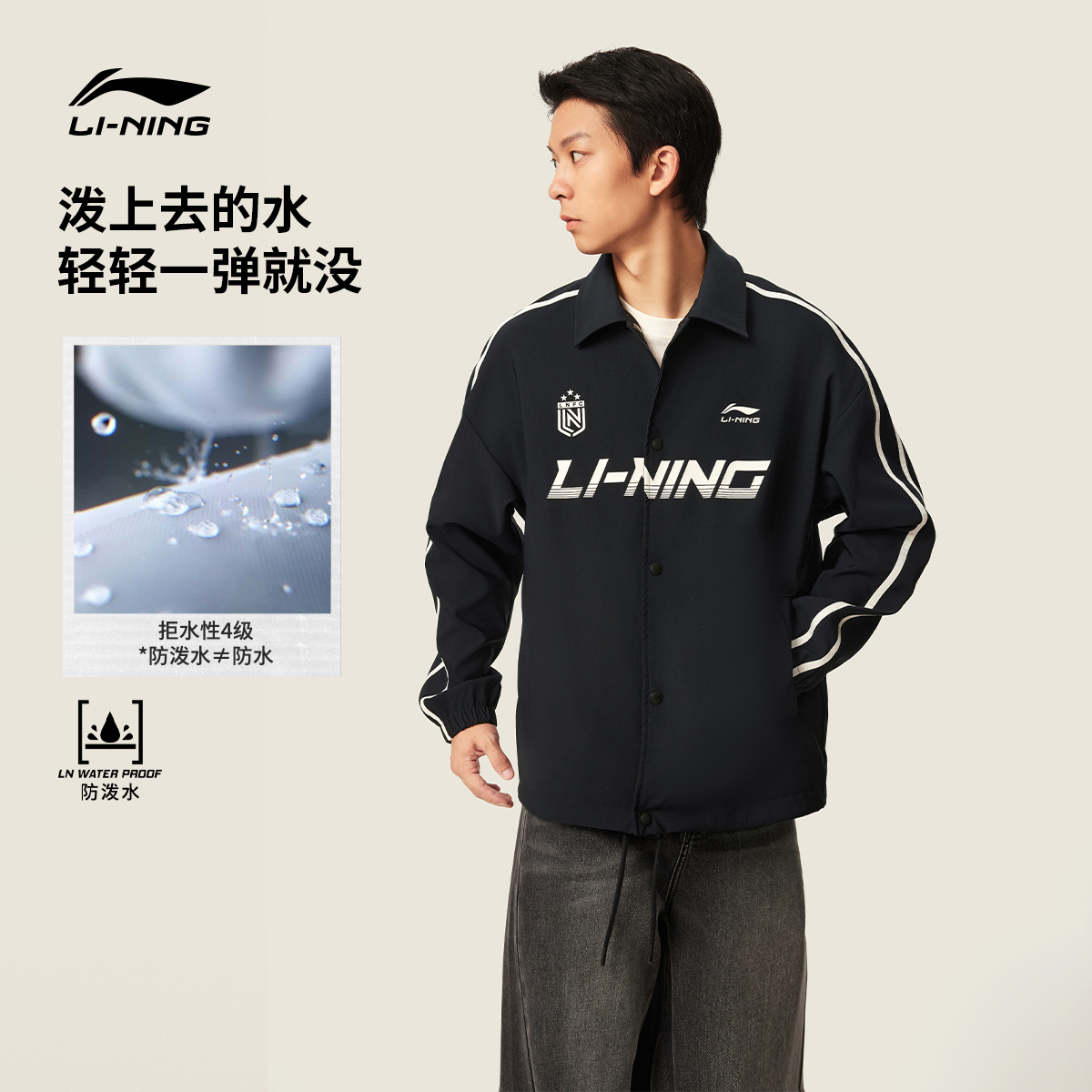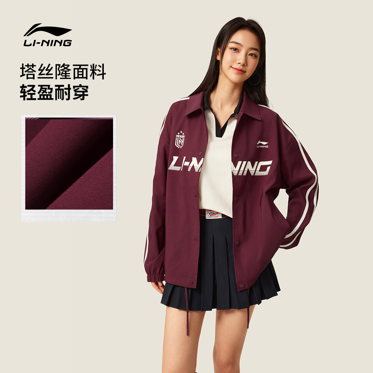 美式 情侣开衫 上衣复古球迷运动翻领教练夹克女 新款 李宁外套男秋季