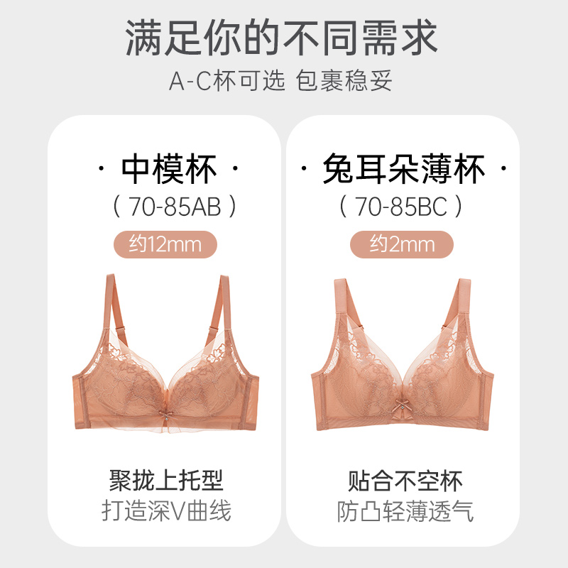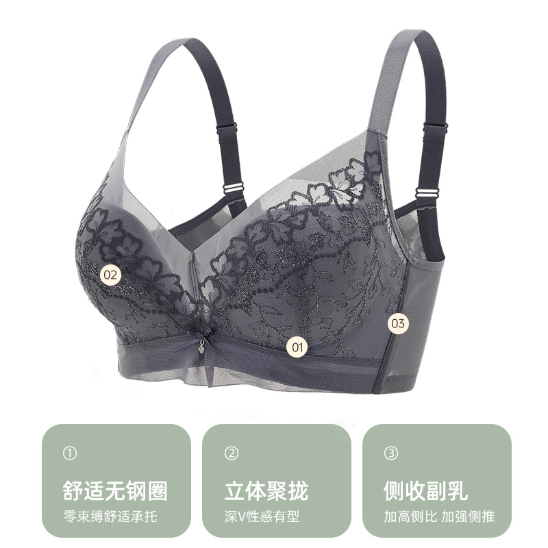 依曼丽 蕾丝内衣女聚拢小胸上托收副乳调整型文胸 刺绣花间
