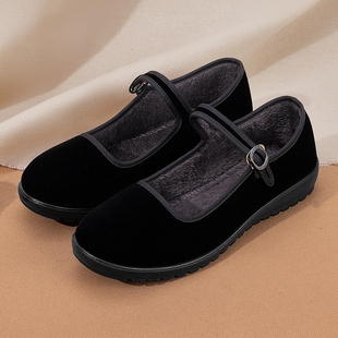 棉鞋 加绒加厚老年人中老年平底上班黑色工作单鞋 女冬季 老北京布鞋