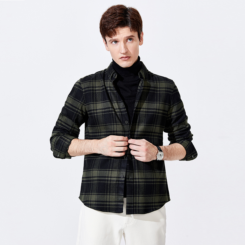 男秋冬新款 衬衫 通勤复古衬衣 格纹长袖 Navigare意大利小帆船厚款