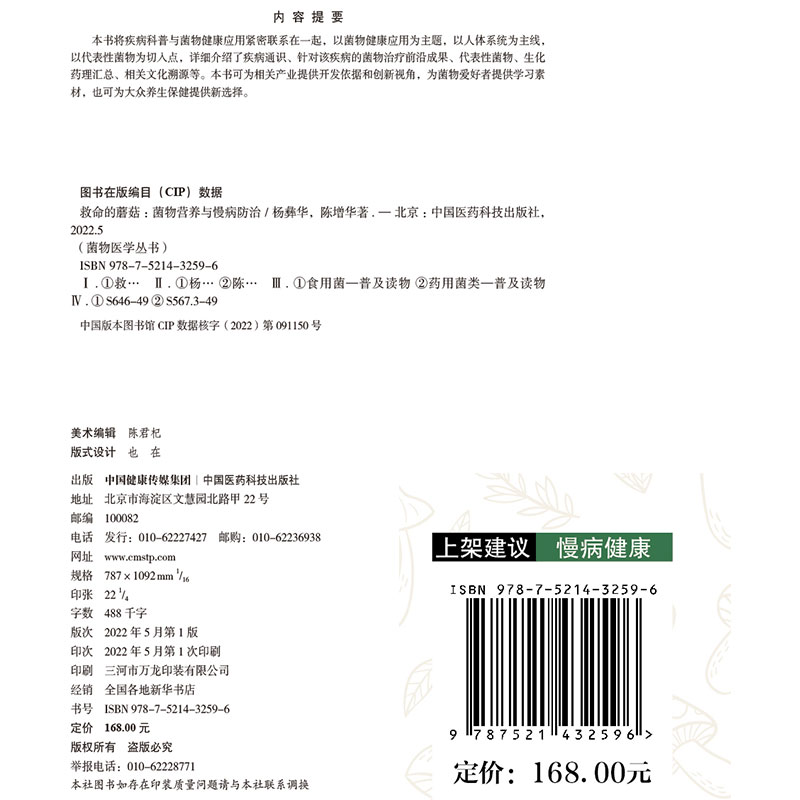 菌物医学丛书 T食用菌药用菌类普及读物 杨彝华 救命 中国医药科技出版 菌物营养与慢病防治 陈增华著 社9787521432596 蘑菇