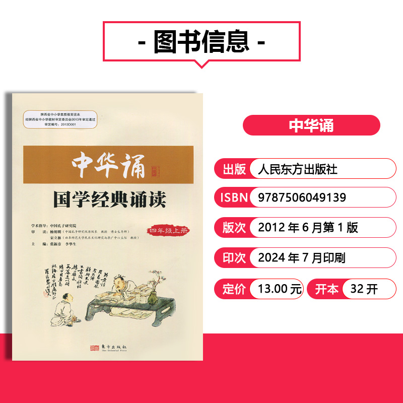 诵读4四年级上册语文经典 诵读背诵经典 素读范本人民东方出版 4年级上册中华素读教程 日有所诵 社传媒 2024小学中华诵国学经典