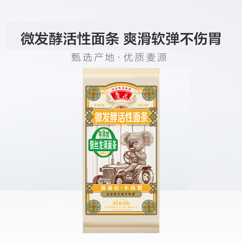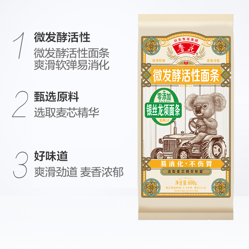 鲁花考拉系列银丝龙须面条600g 2仿手工不坨口感劲道爽滑方便速食