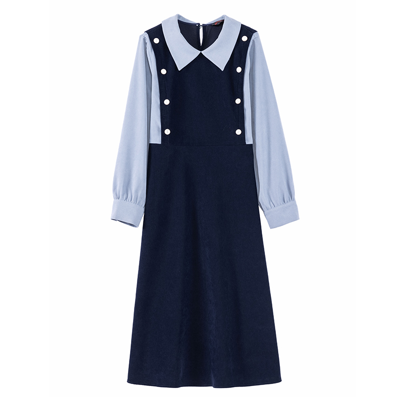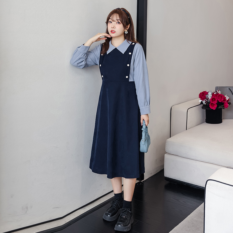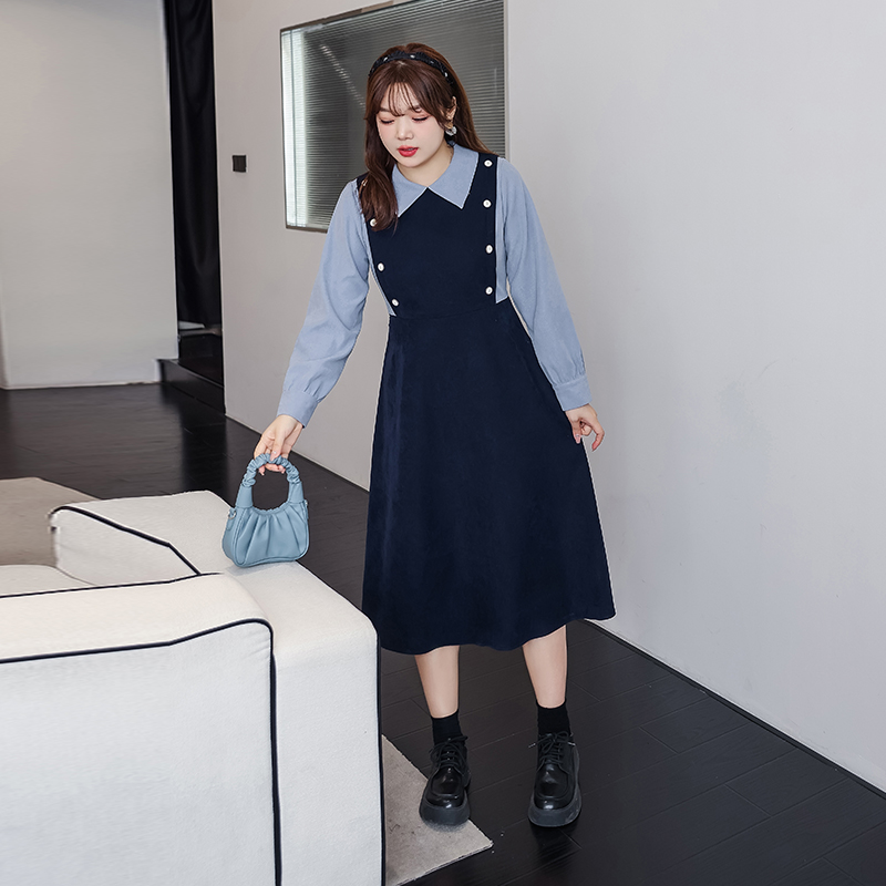 气质厚磨毛长款 大码 新款 2024年冬季 假两件连衣裙显瘦遮肉胖mm 女装