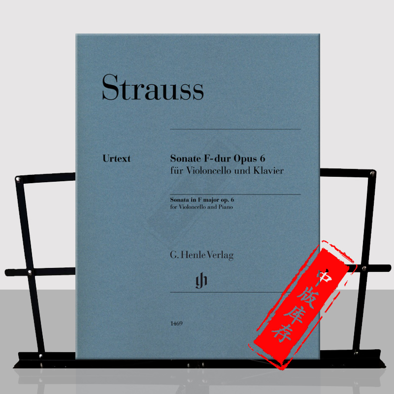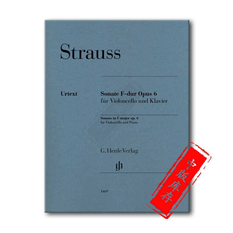 带钢琴伴奏 乐谱书 施特劳斯 Op6 HN1469 大提琴奏鸣曲 含指法和弓法 F大调 Cello Strauss 亨乐原版 Major Sonata