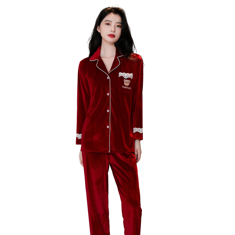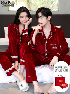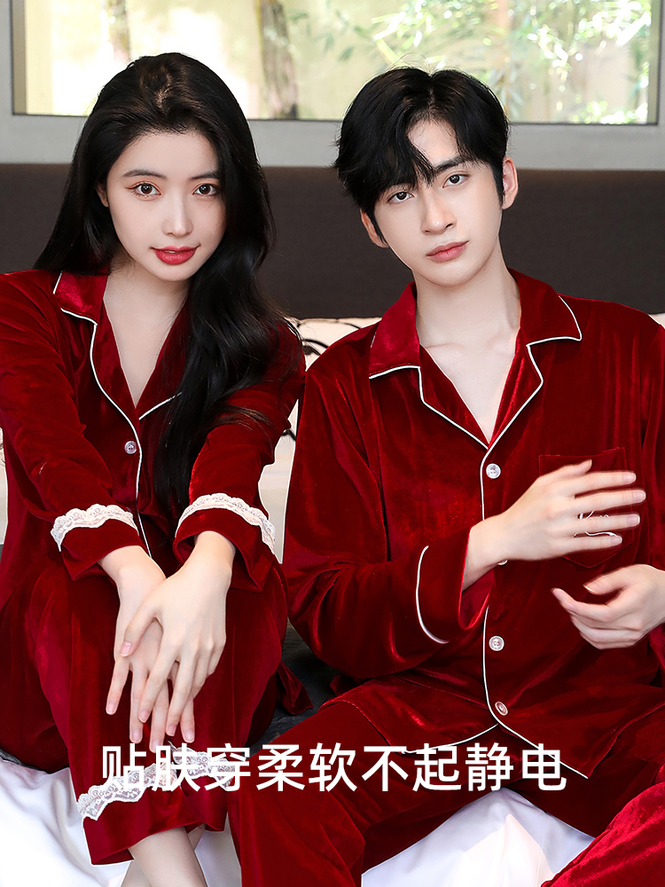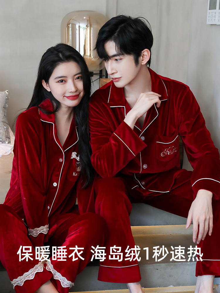 大码 男士 200斤秋季 冬季 2套红色睡衣结婚新婚情侣套装 加厚长袖 女款