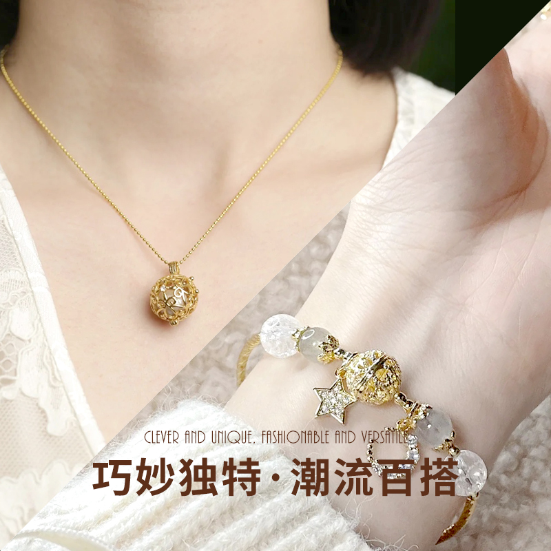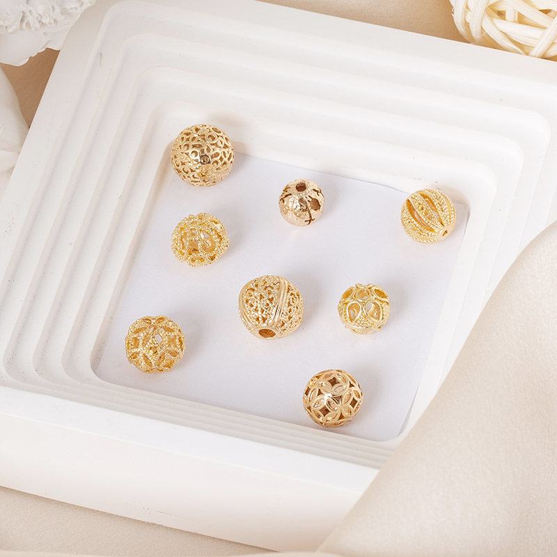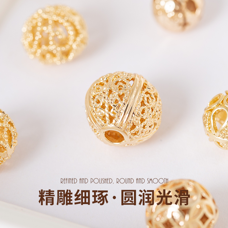 镀18k金保色镂空隔珠散珠圆形配珠手工diy穿珍珠手链串珠手串配件