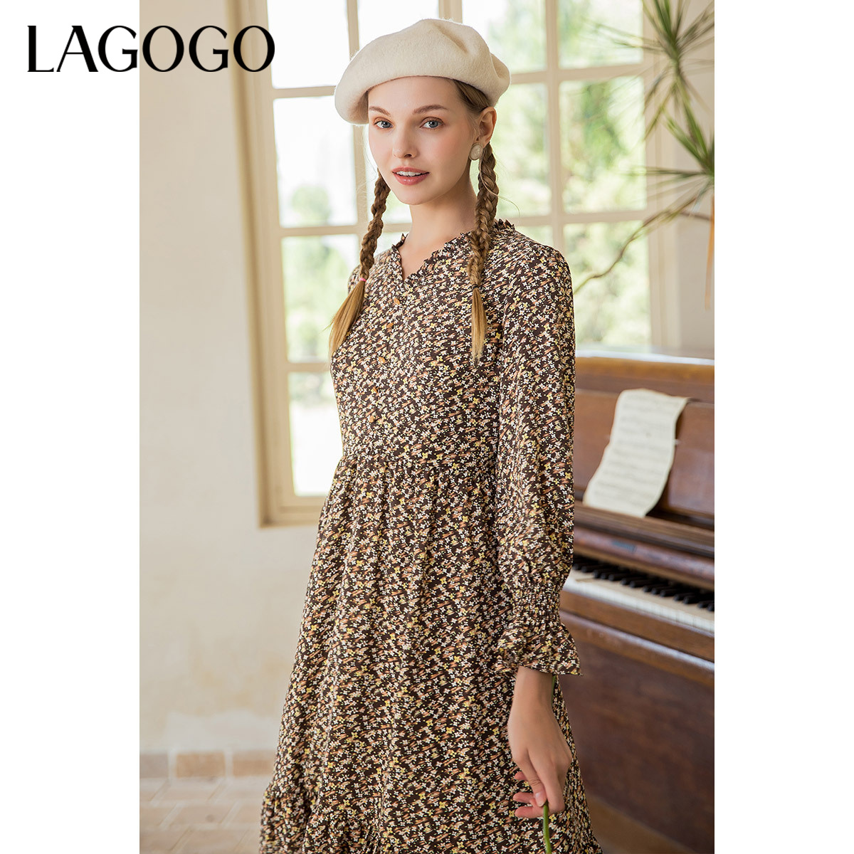 HM女装 气质抽绳喇叭裙摆中长植物印花吊带长裙1233862 连衣裙秋季
