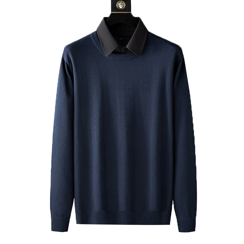 时尚 假两件毛衣针织衫 女洋气宽松妈妈装 翻领衬衫 外穿上衣 秋冬新款