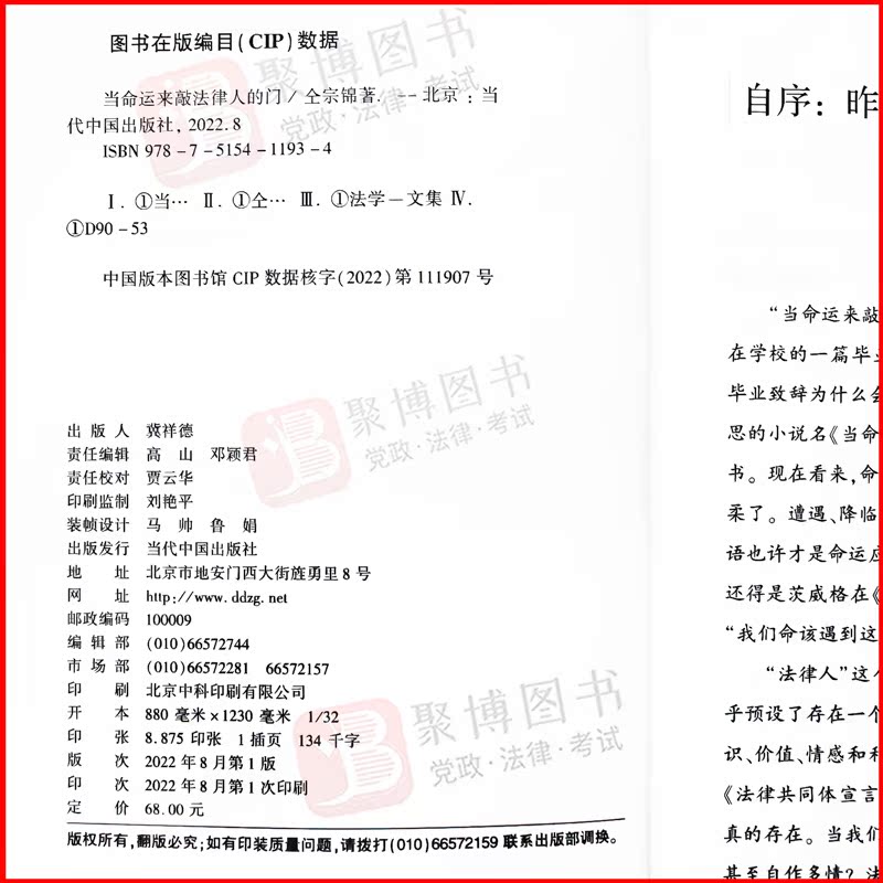当命运来敲法律人 当代中国出版 门 法学文集法学评论随笔集 社9787515411934 仝宗锦 2022新书