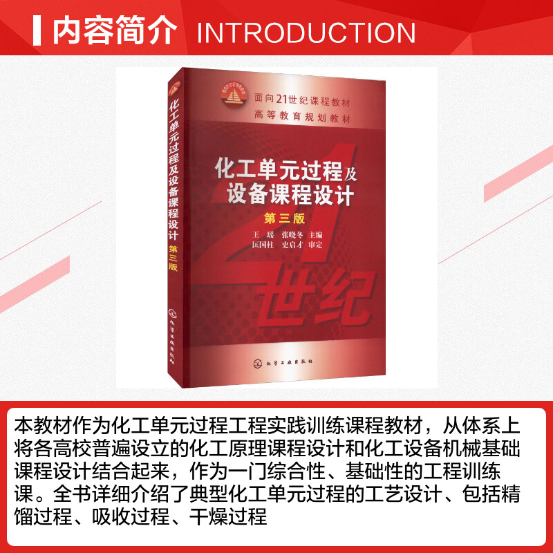 化学工业大中专 社 第3版 化学工业出版 图书籍 新华书店正版 编 张晓冬 王瑶 过程及设备课程设计 化工单元