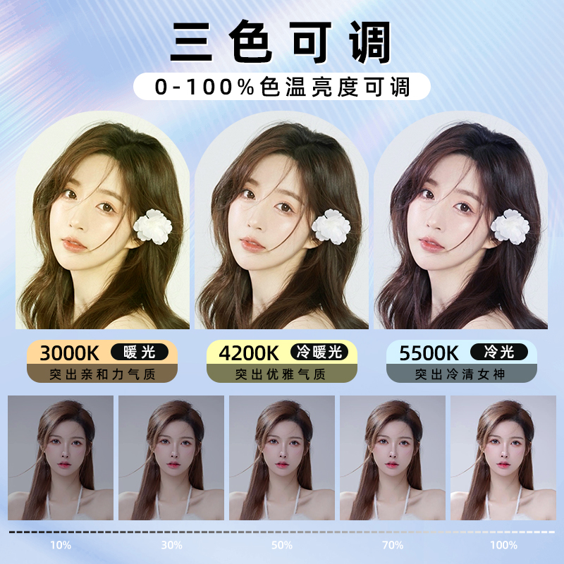 700W专业直播补光灯三色可调主播美颜嫩肤直播间氛围LED灯光室内打光网红专用球形柔光设备摄影拍照视频拍摄