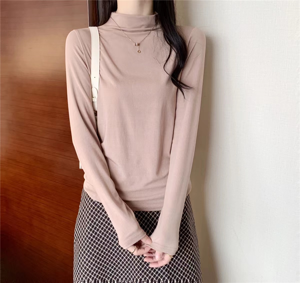 别致上衣服潮 女秋冬内搭设计感小众t恤小衫 洋气半高领长袖 打底衫