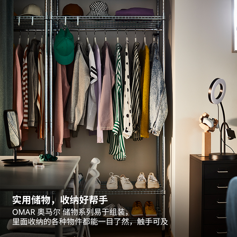 IKEA宜家OMAR奥马尔搁架单元 带挂衣杆置物架收纳架衣架组合储物架