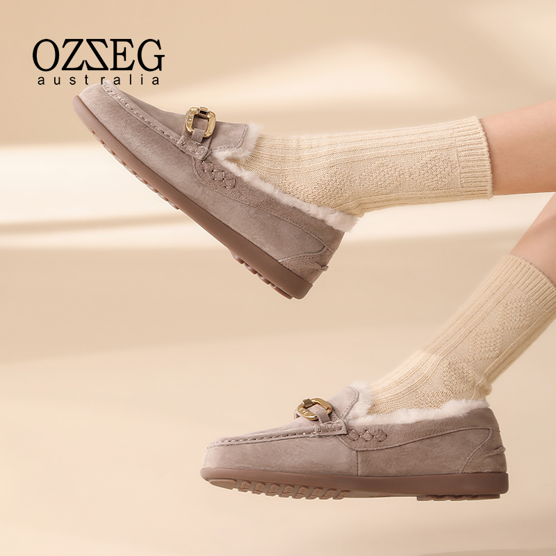 22D16 一脚蹬保暖棉鞋 OZZEG澳泽格加绒加厚豆豆鞋 女2025秋冬毛毛鞋