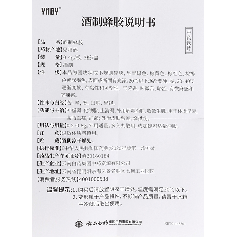 云南白药 24粒身体虚弱解毒消肿高脂血症皮肤烧伤 酒制蜂胶