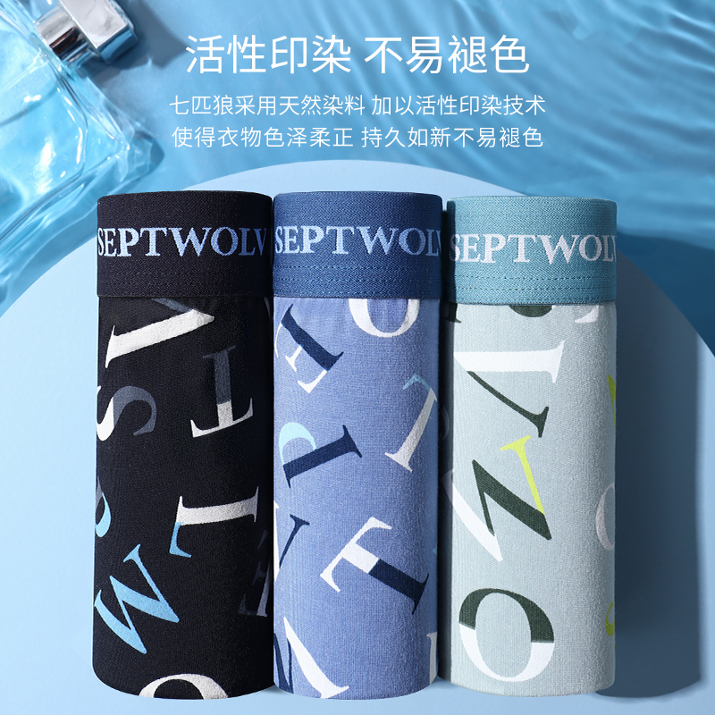2025新款 男冰丝平角裤 短裤 男式 潮 七匹狼男士 男生莫代尔四角裤 内裤