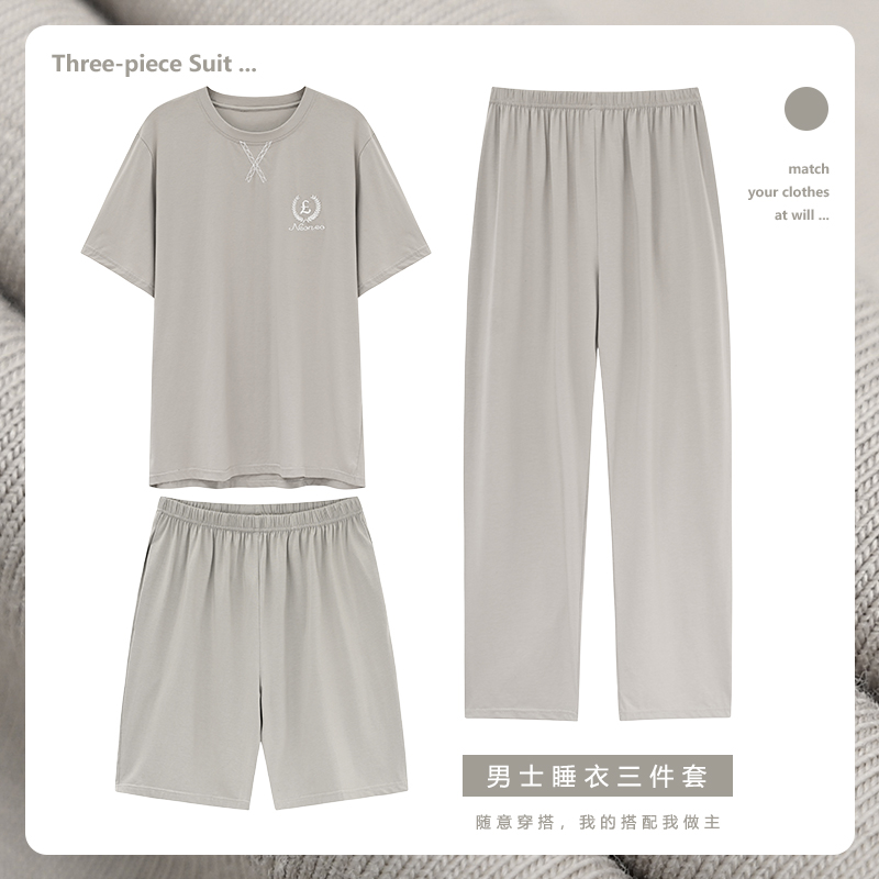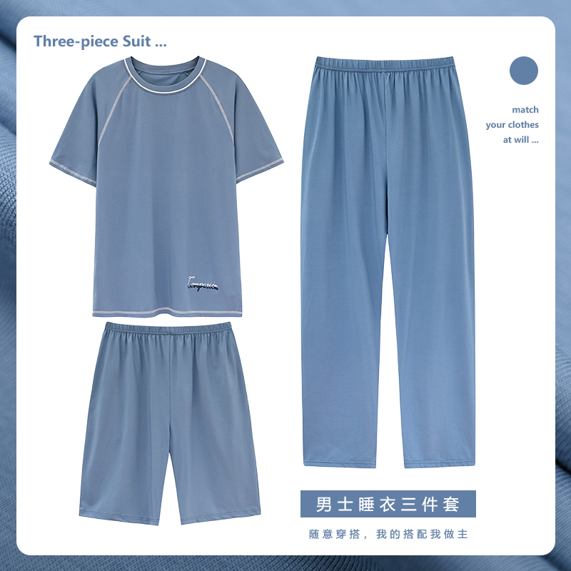 三件套莫代尔家居服男夏天短袖 薄款 长裤 宽松大码 男士 套装 睡衣夏季