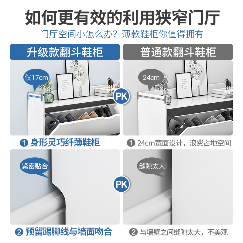 翻斗鞋 架 柜超薄17cm家用进门口大容量小户型简易简约现代储物柜鞋