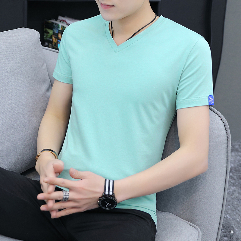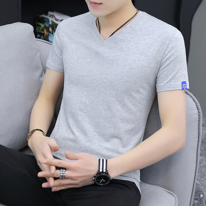 棉感粉色修身 T恤V领夏季 冰丝半袖 男体恤衫 男士 鸡心领潮流男装 短袖