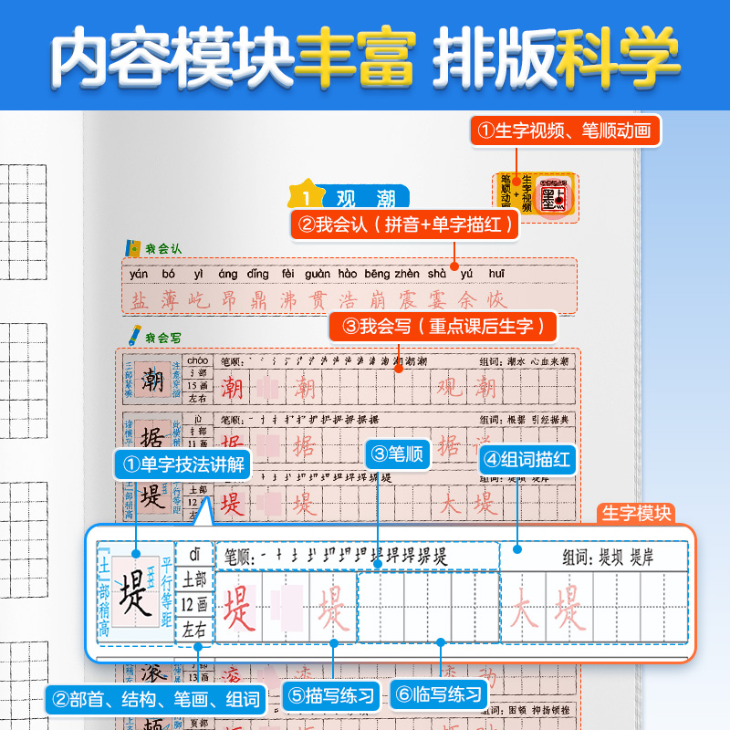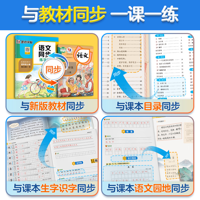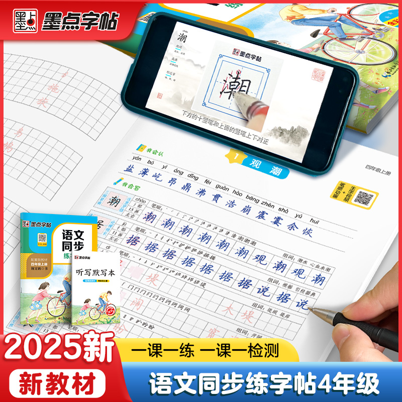 小学生四年级上册练字专用墨点字帖人教版 语文同步练字帖生字笔顺四年级下册每日一练暑假作业钢笔硬笔书法荆霄鹏正楷书描红练字本
