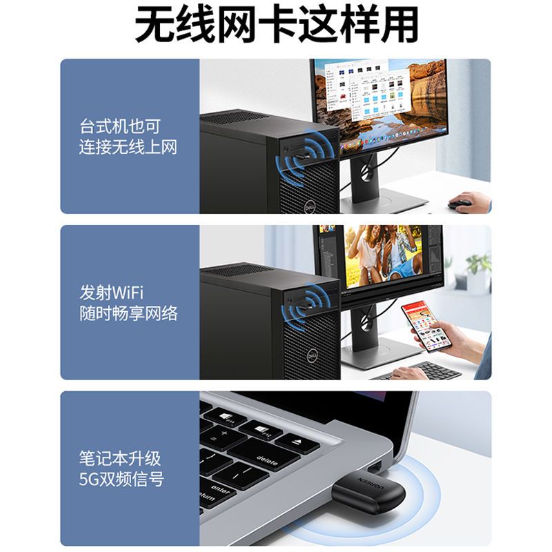 绿联usb无线网卡台式 电脑主机wifi6接收发射器笔记本家用高速无限连接热点外置网络外接千兆5G双频信号免驱动