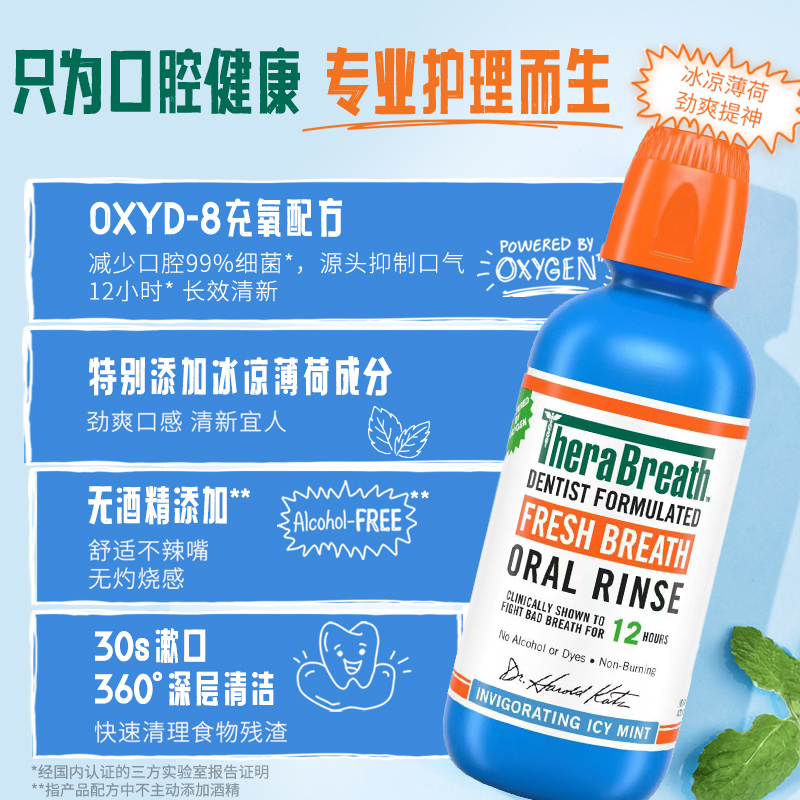 TheraBreath凯斯博士漱口水口臭清新口气涑男士 女生除便携持久