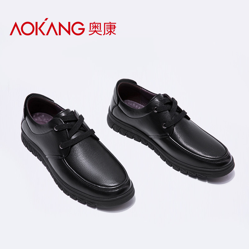 真皮软面套脚加绒内增高通勤舒适爸爸鞋 奥康男鞋 春秋商务休闲皮鞋