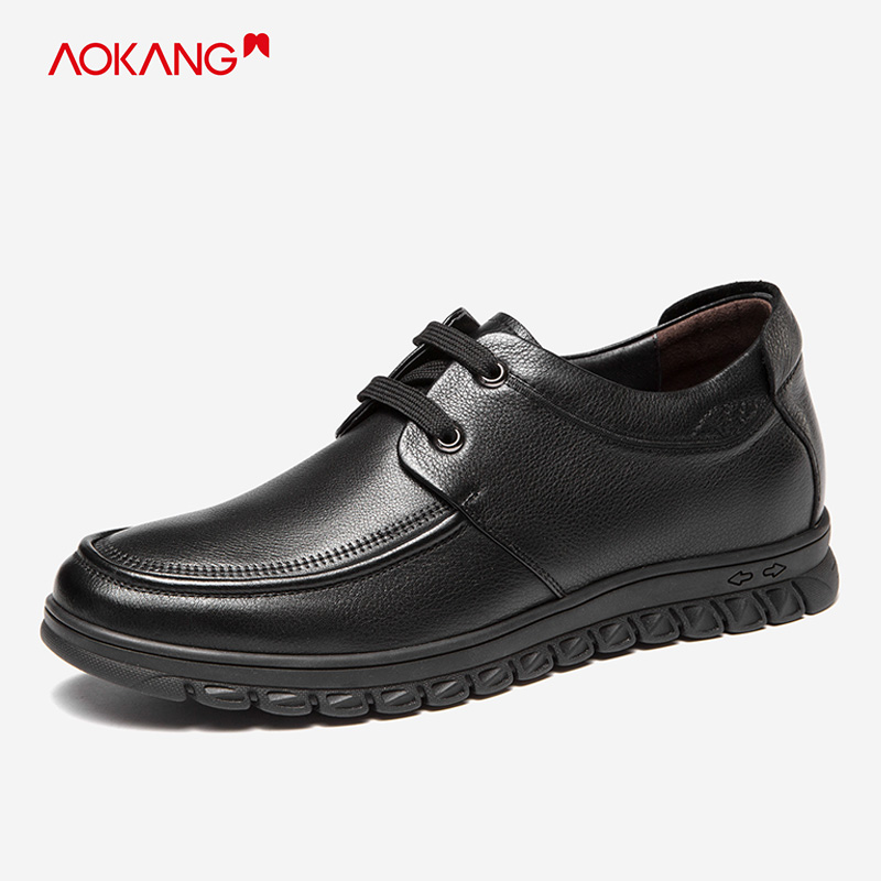 2025秋冬新款 男鞋 商务鞋 增高皮鞋 子 软底休闲系带圆头正装 奥康男鞋