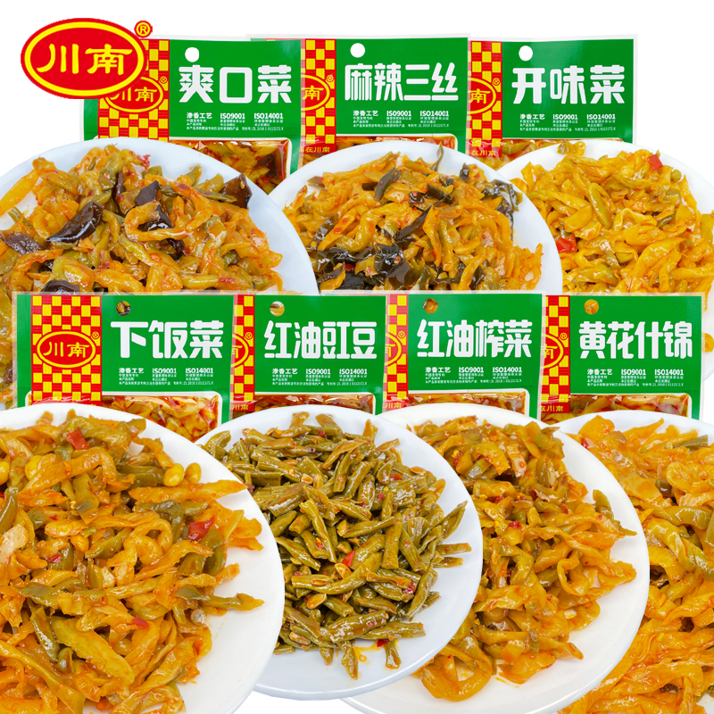 川南榨菜123g爽脆豇豆酸豆角红油榨菜爽口下饭开味麻辣三丝什锦菜