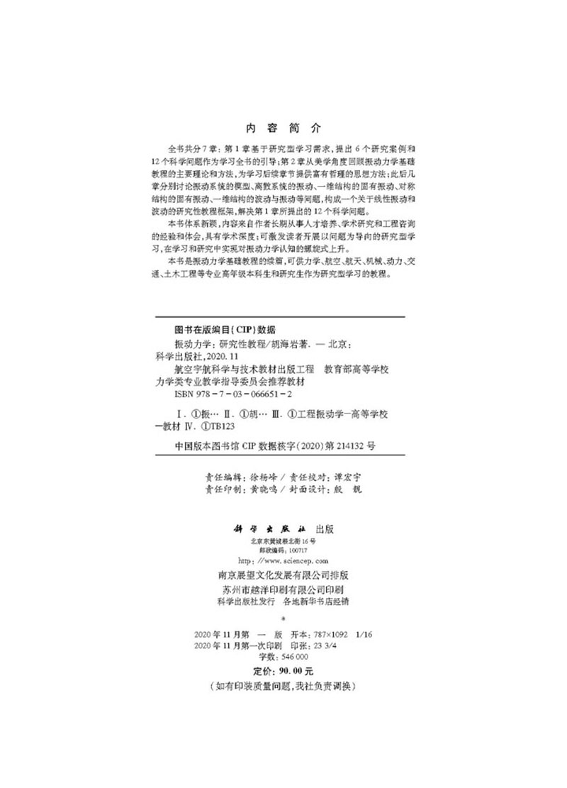 振动力学研究性教程 社9787030666512 航空宇航科学与技术十三五规划教材胡海岩著科学出版