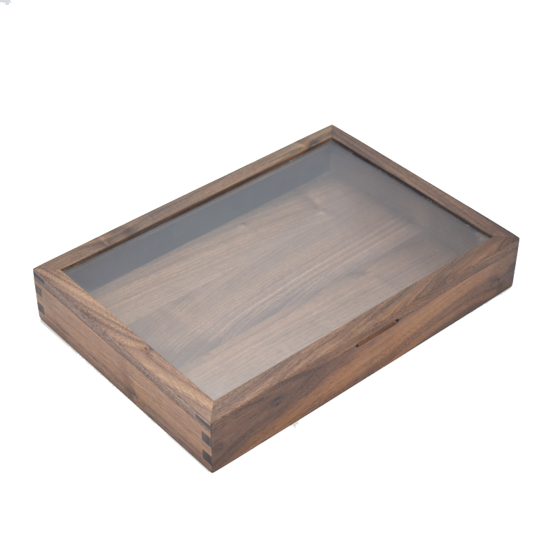 陈列盒北美特级黑胡桃玻璃透明收藏展示盒实木带盖收纳整理首饰盒