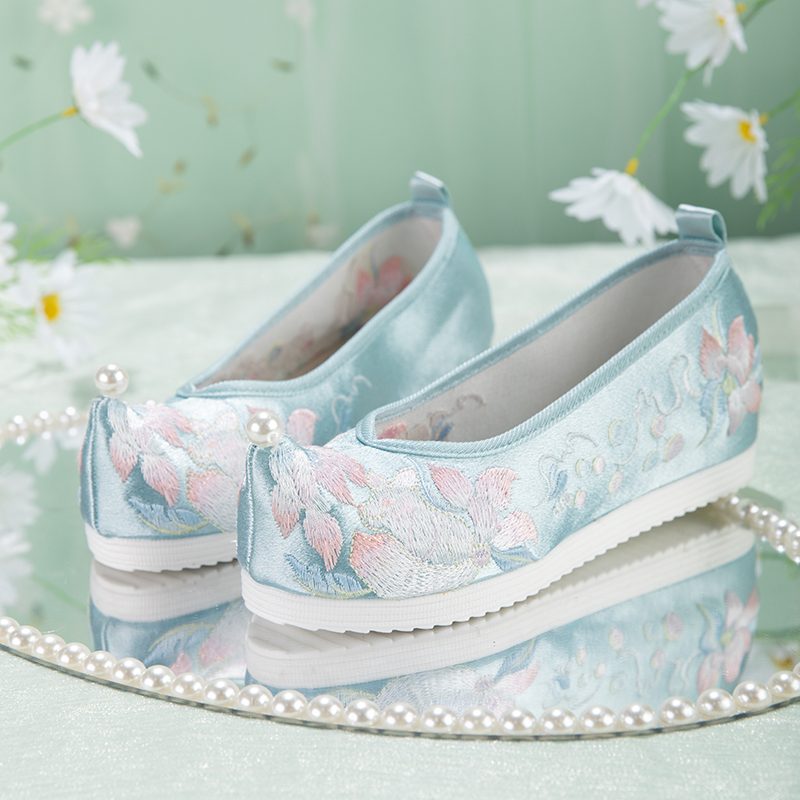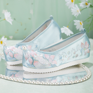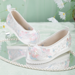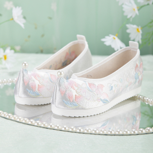 子女布鞋 素绣花鞋 刺绣防滑翘头内增高古装 子古风汉元 鞋 原创汉服鞋