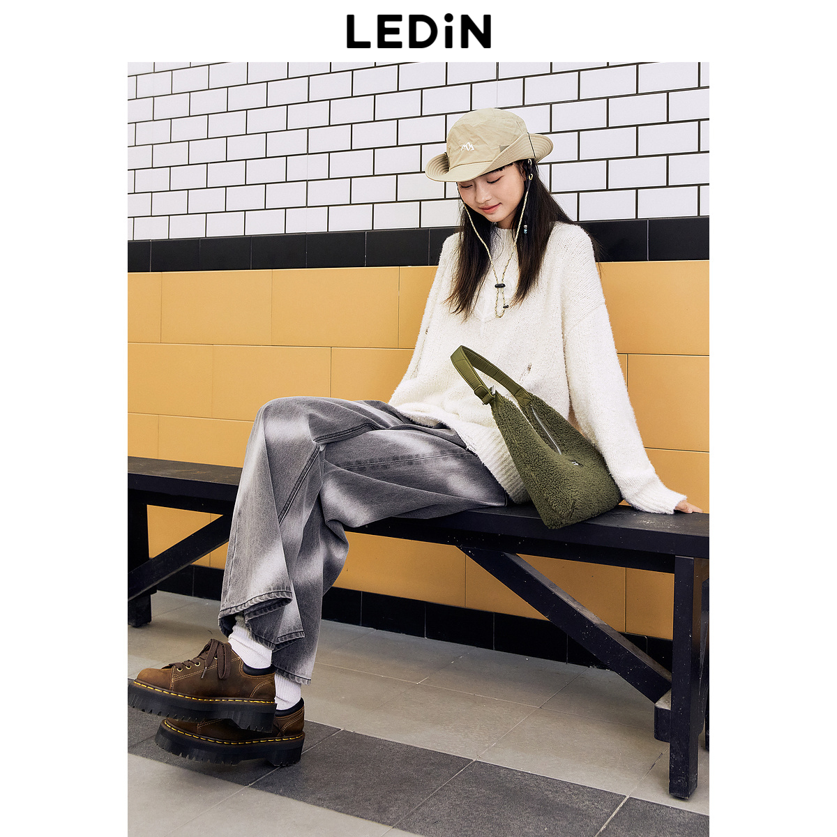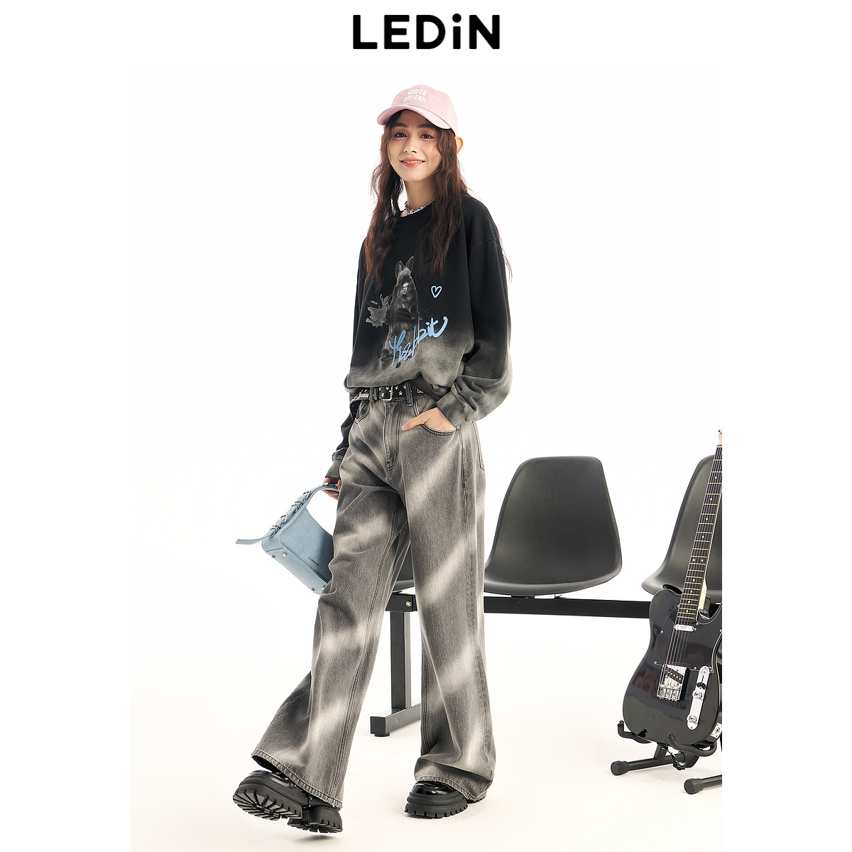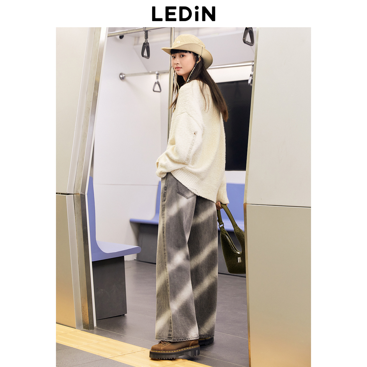 宽松长裤 女秋冬新款 乐町喷色牛仔阔腿裤 C2HAD4E21 清仓