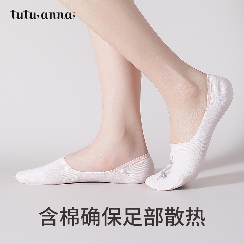 tutuanna船袜女夏季 纯色动物印花隐形船袜防滑不掉跟透气隐形袜