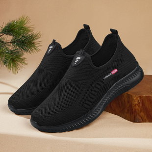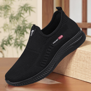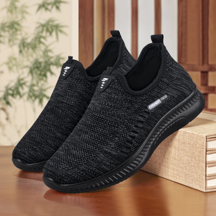 男官方旗舰店新款 爸爸鞋 老人鞋 黑色一脚蹬男士 透气网鞋 老北京布鞋