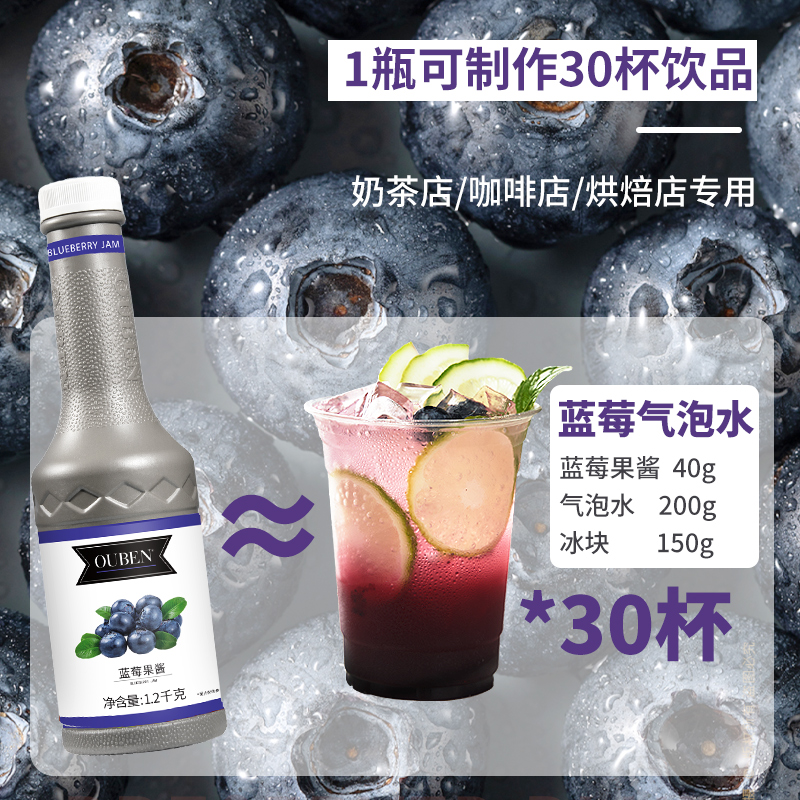 欧本蓝莓果酱1.2KG甜品商用酸奶罐罐奶茶店专用烘焙饮料浓缩果浆