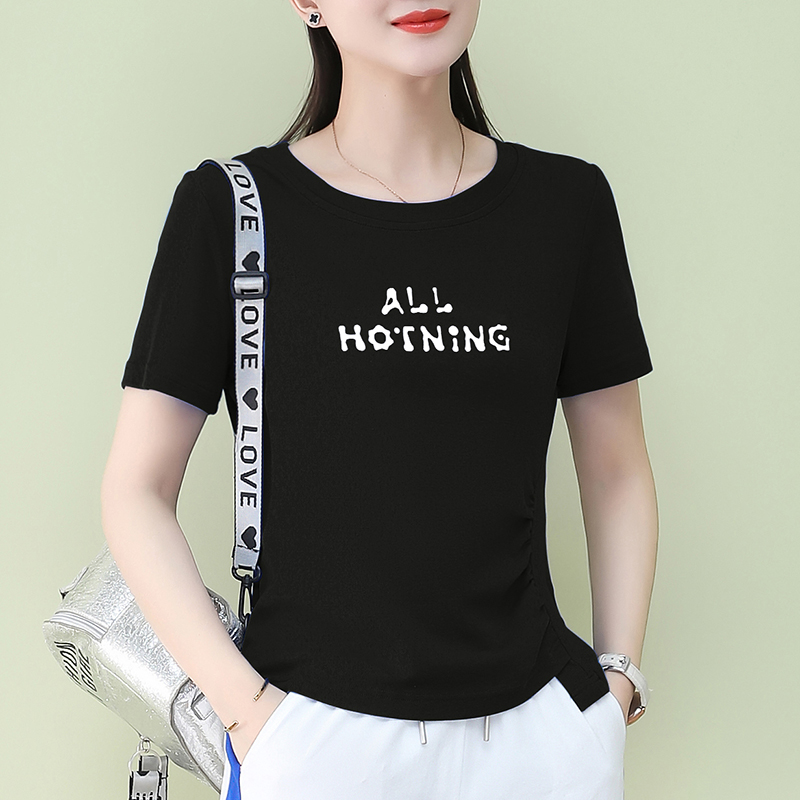 t恤女2025新款 时尚 爆款 设计感小众T恤衫 不规则上衣 夏季 冰丝短袖