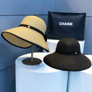 帽子女夏天海边度假风空顶草帽可扎马尾草编大帽檐遮阳防晒渔夫帽