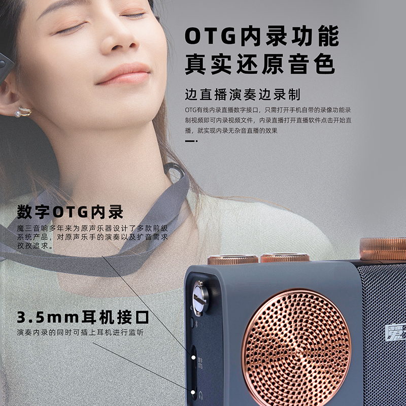 魔三XS音箱电吹管专用内录蓝牙乐器小音响2024年新款 魔3洈水