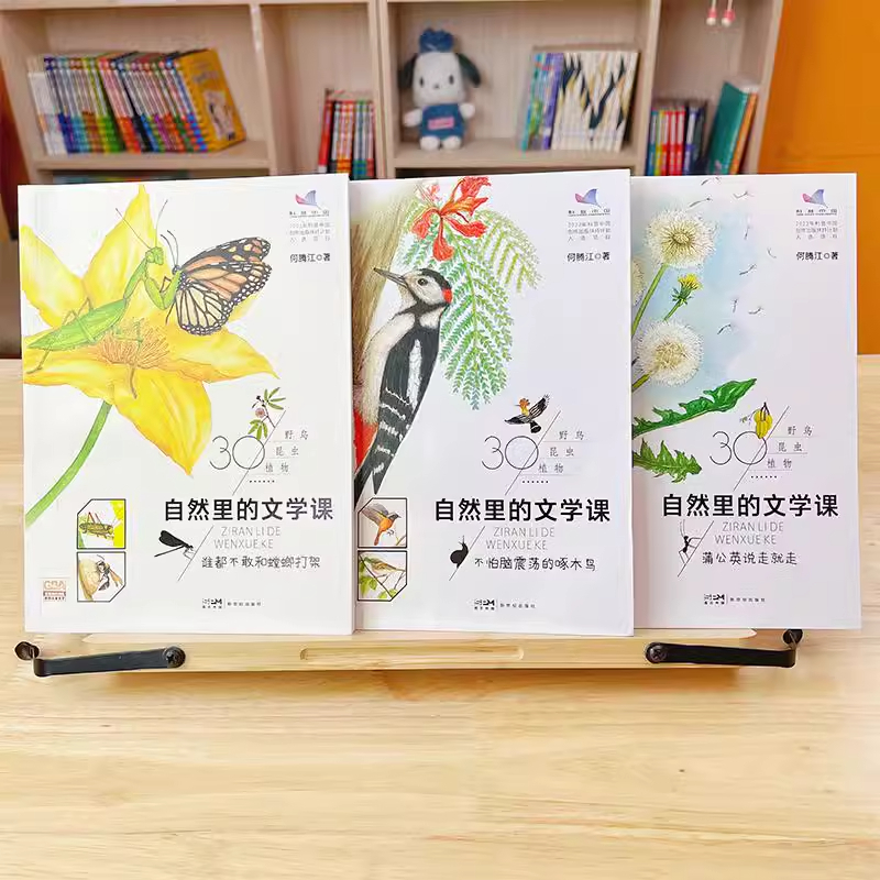 啄木鸟谁都不敢和螳螂打架花鸟植物百科正版 自然里 自然观察笔记日记趣味百科蒲公英说走就走不怕脑震荡 何腾江著 文学课全3册