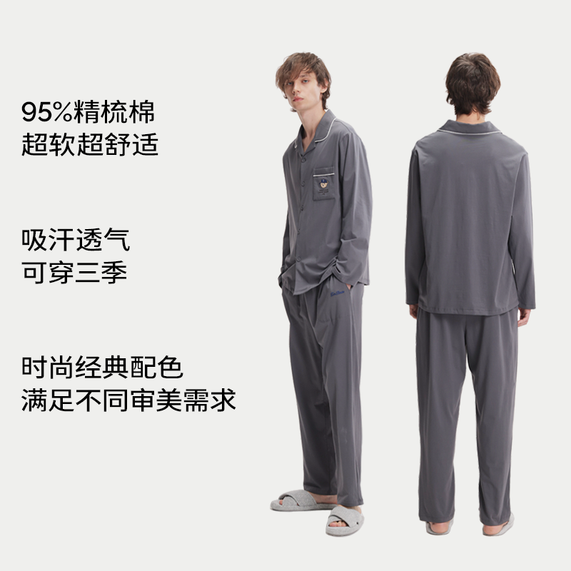 家居服套装 男士 青少年学生男孩大童2025年新款 纯棉长袖 睡衣春秋款
