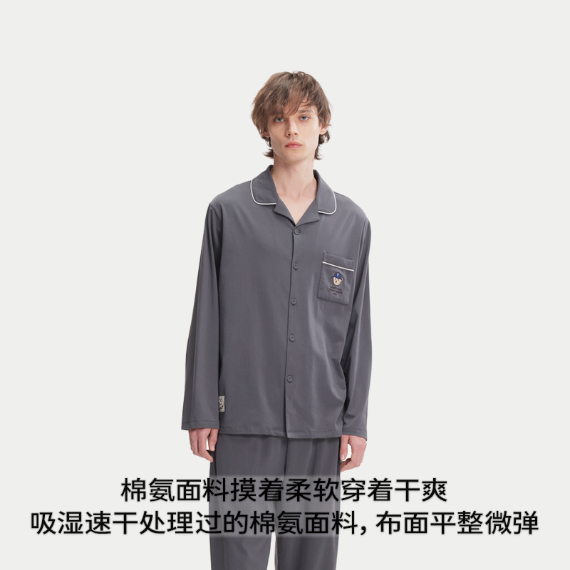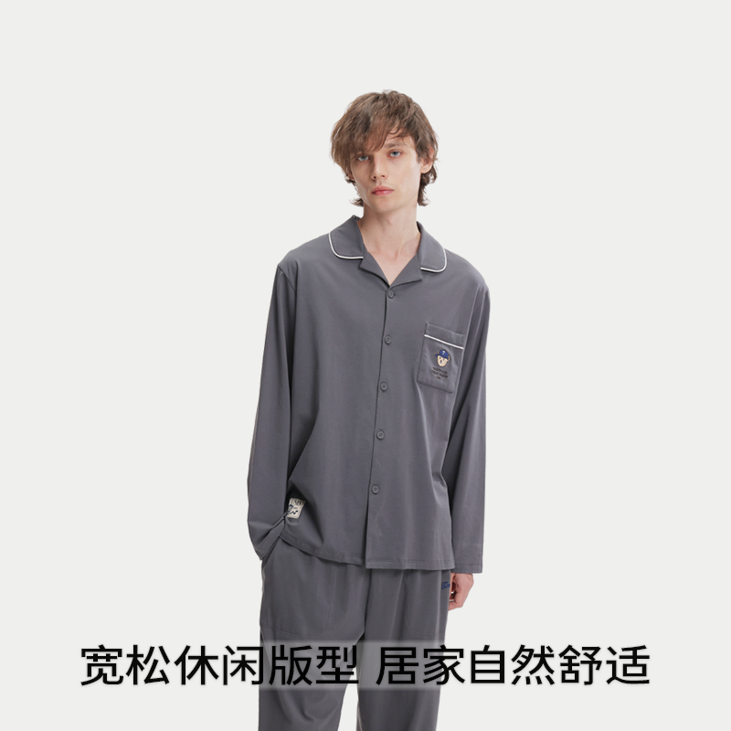 新款 红豆居家男士 柔软春秋季 家居服套装 简约青年 睡衣纯棉格纹长袖