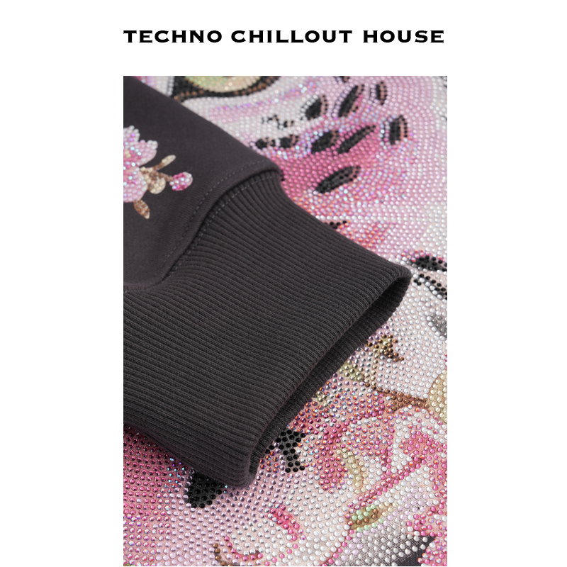 TCH烫钻轻奢潮牌百搭长袖 春秋T72C126005 连帽卫衣男女同款