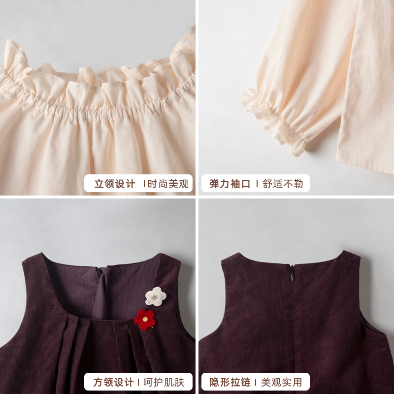 套装 叠穿内搭T恤木耳边牛仔阔腿裤 新款 蓝色镂空针织背心裙女秋季